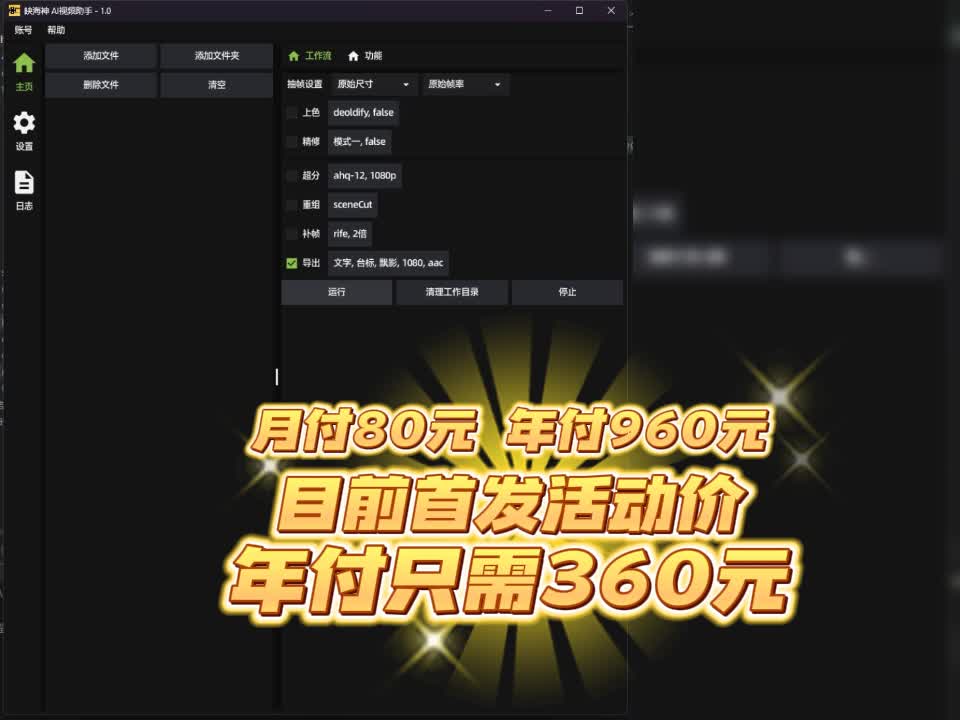 AI视频助手是一款基于工作流的AI视频处理软件,软件的设计思路就是,让用户使用简单的操作来自动化的实现一系列复杂任务,可以帮助短视频作者快速的批量的对视频进行加工处理。节省用户时间。 用户可以在网站充值,复杂任务可以提交云端,由我们通过自有算力帮您处理。因为目前很多AI功能都需要消耗大量的算力和时间才能处理完成。我们可以帮您最大化的节约时间和处理成本。